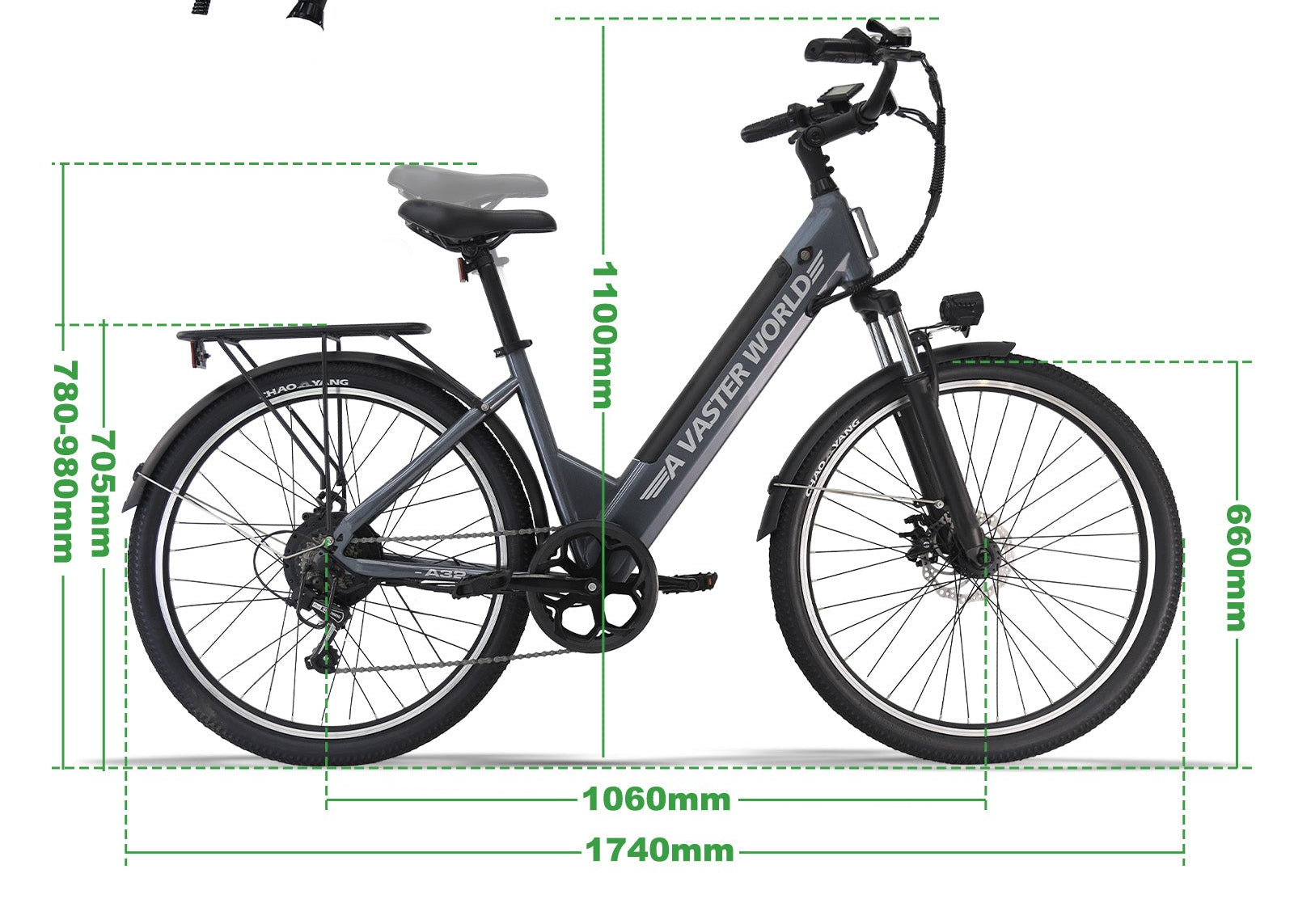 Deze stads-e-bike is uitgerust met een verwijderbare accu, waardoor je de batterij eenvoudig mee naar binnen neemt om overal gemakkelijk op te laden. Met voldoende vermogen biedt de e-bike een actieradius tot 70 km in trapondersteuningsmodus, ideaal voor dagelijkse ritten, woon-werkverkeer en stadsgebruik.