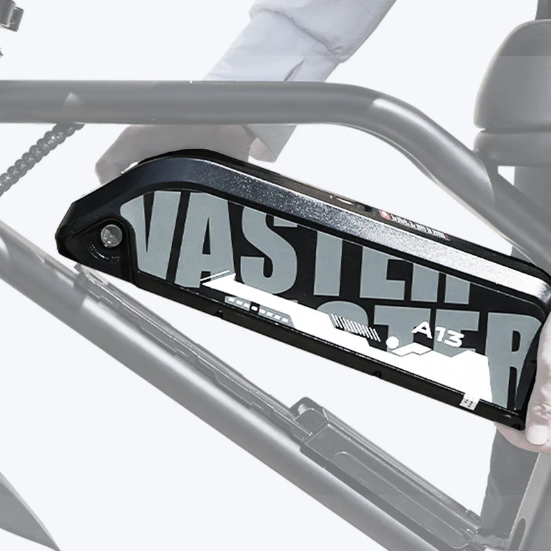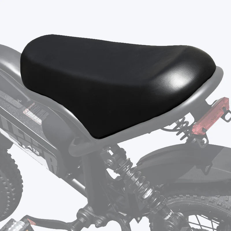 De A13 Off-Road e-bike is uitgerust met een extra ruim zadel van 40 × 22 cm, wat aanzienlijk meer contactoppervlak biedt dan een standaard fietszadel. Het ergonomische ontwerp in combinatie met hoogwaardig traagschuim zorgt voor extra comfort, optimale drukverdeling en een ontspannen zithouding, ook tijdens langere ritten of off-road gebruik.